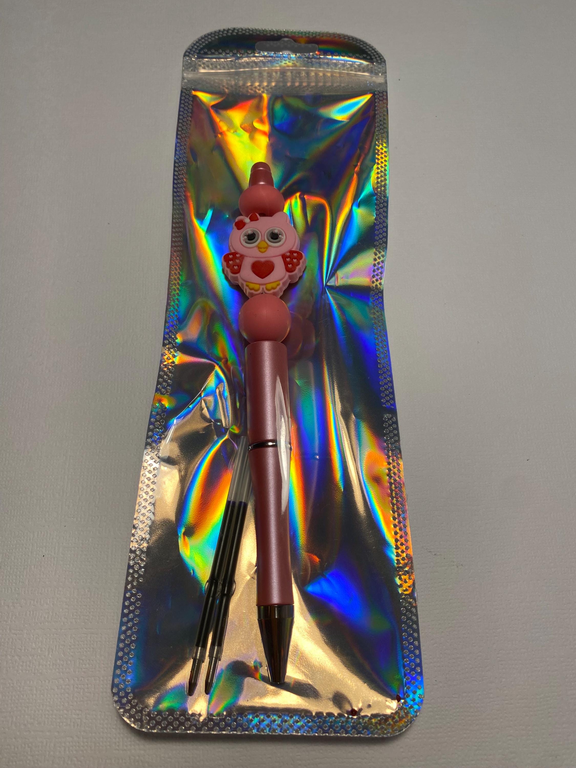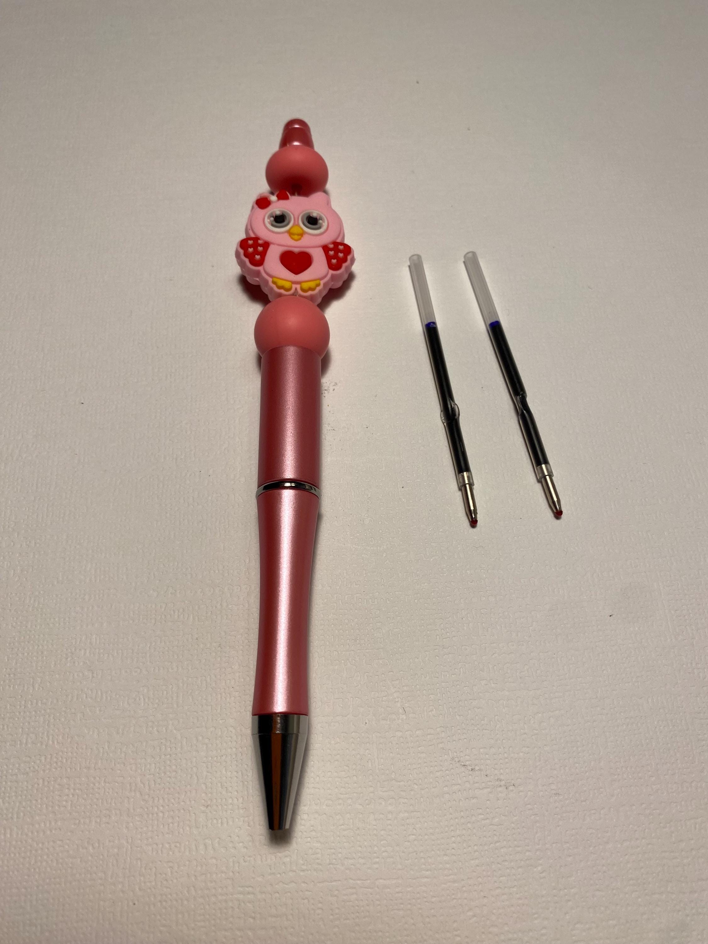 Ballpoint pen with an adorable Pink Owl charm. The beads and charm are interchangeable with other beads and charms. Writes in black ink. Comes with 2 refills.