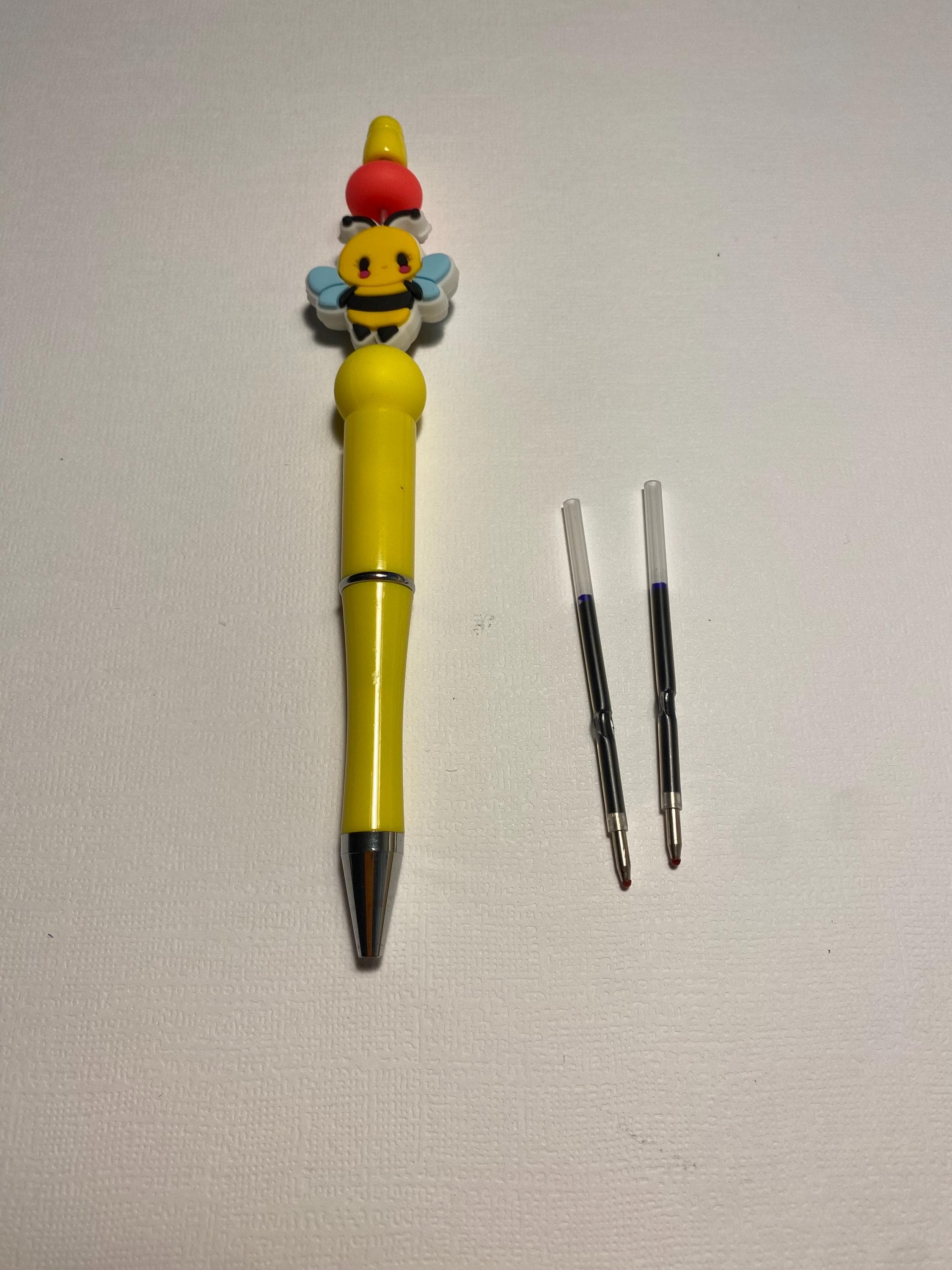Ballpoint pen with an adorable little Yellow Bumblebee. The beads and charms are interchangeable with other beads and charms. Writes in black ink. Comes with 2 refills.
