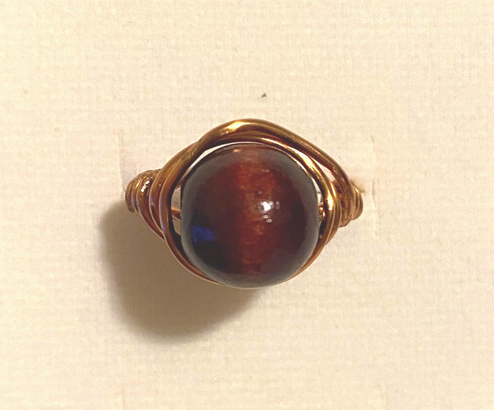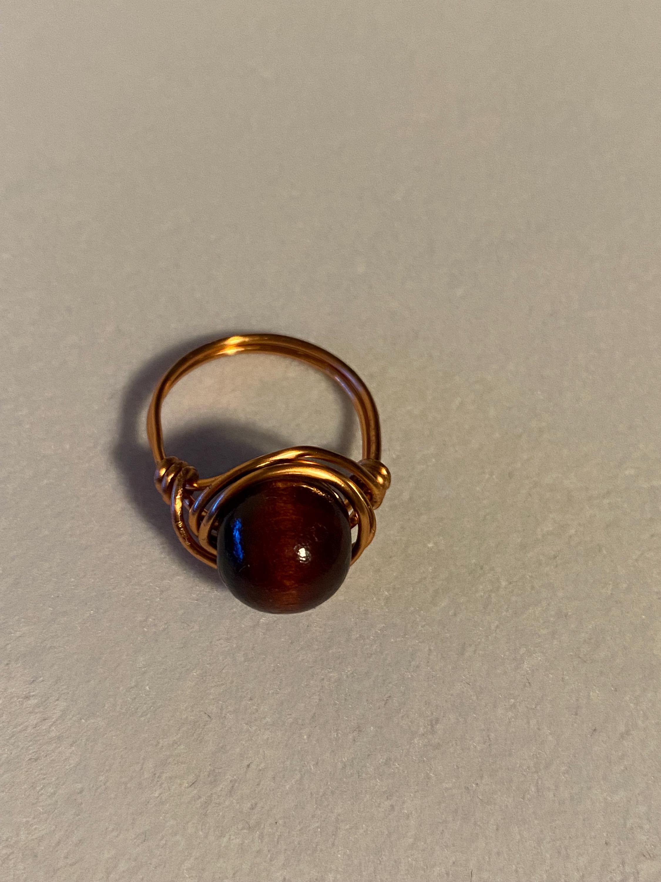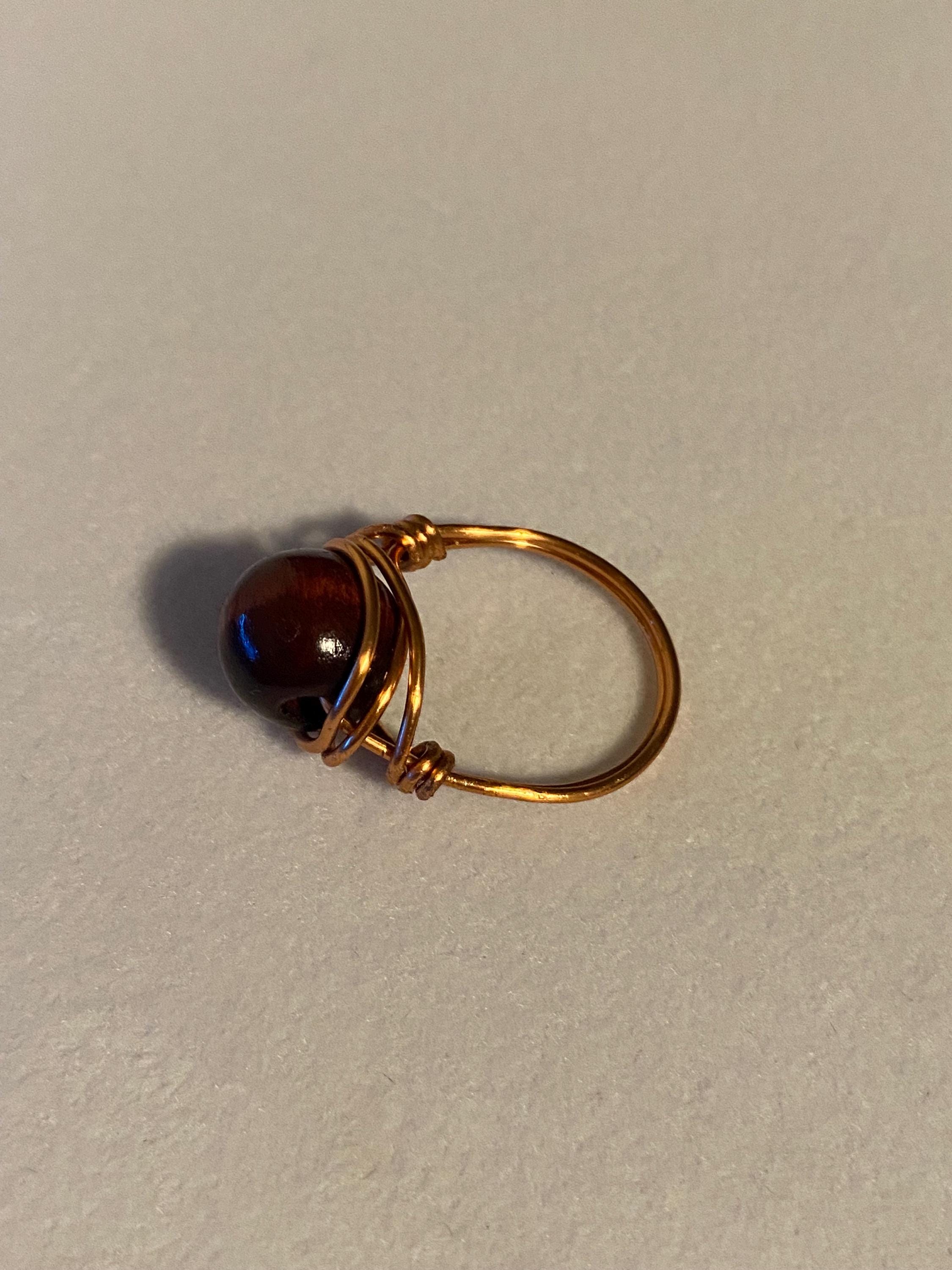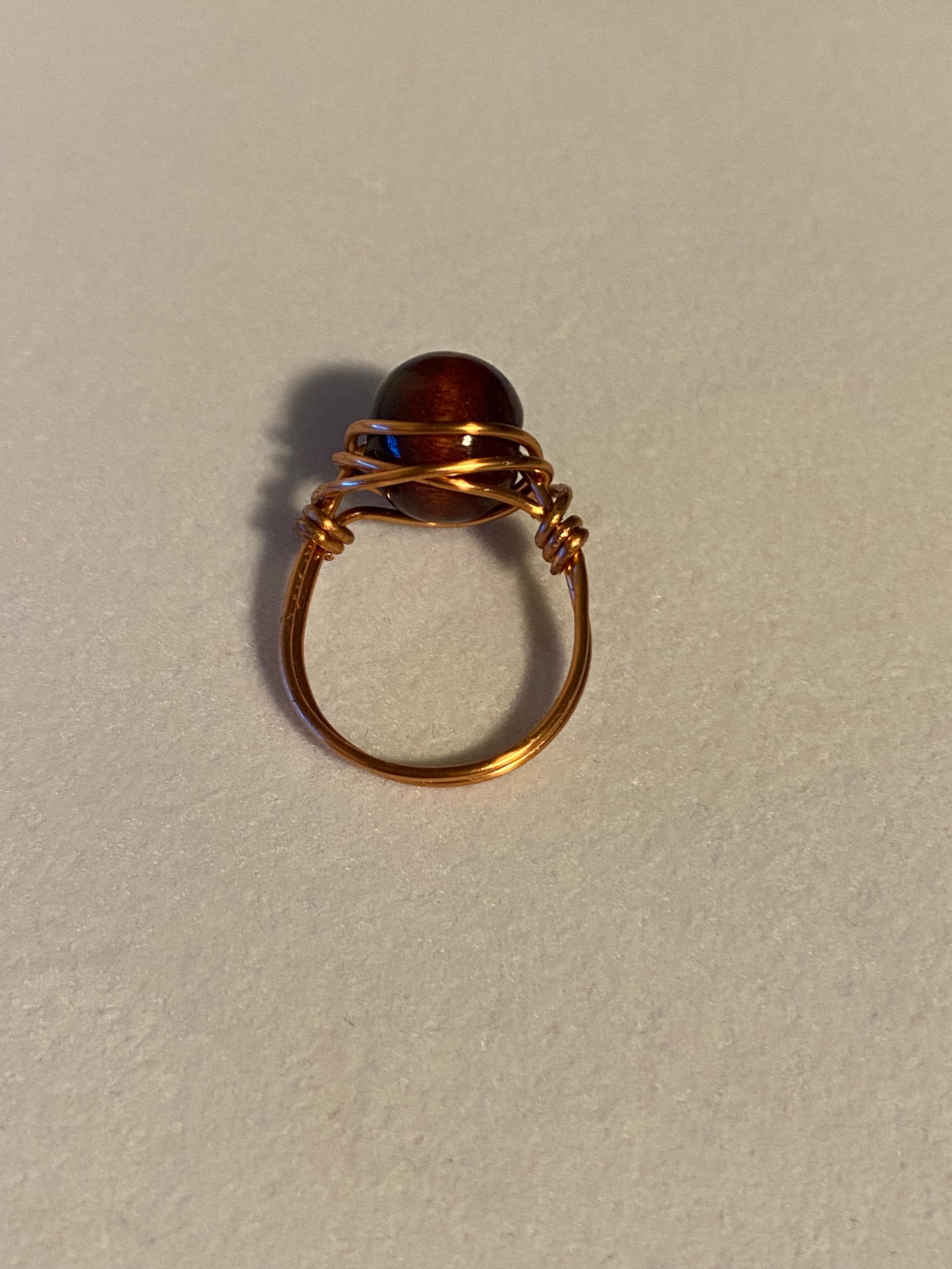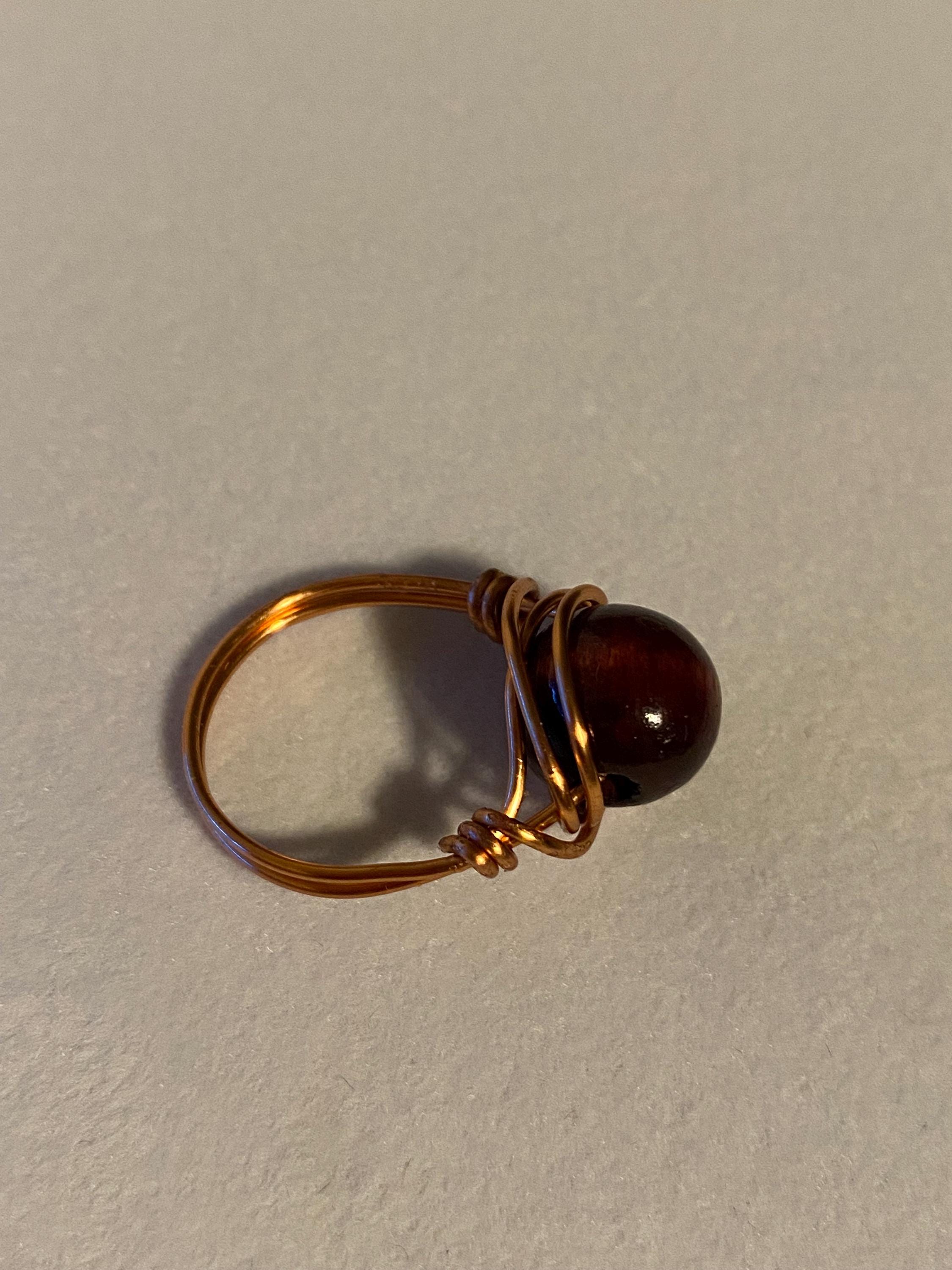 Handmade wire ring made of 20 gauge wire and a wooden bead. Size 8 1/2.