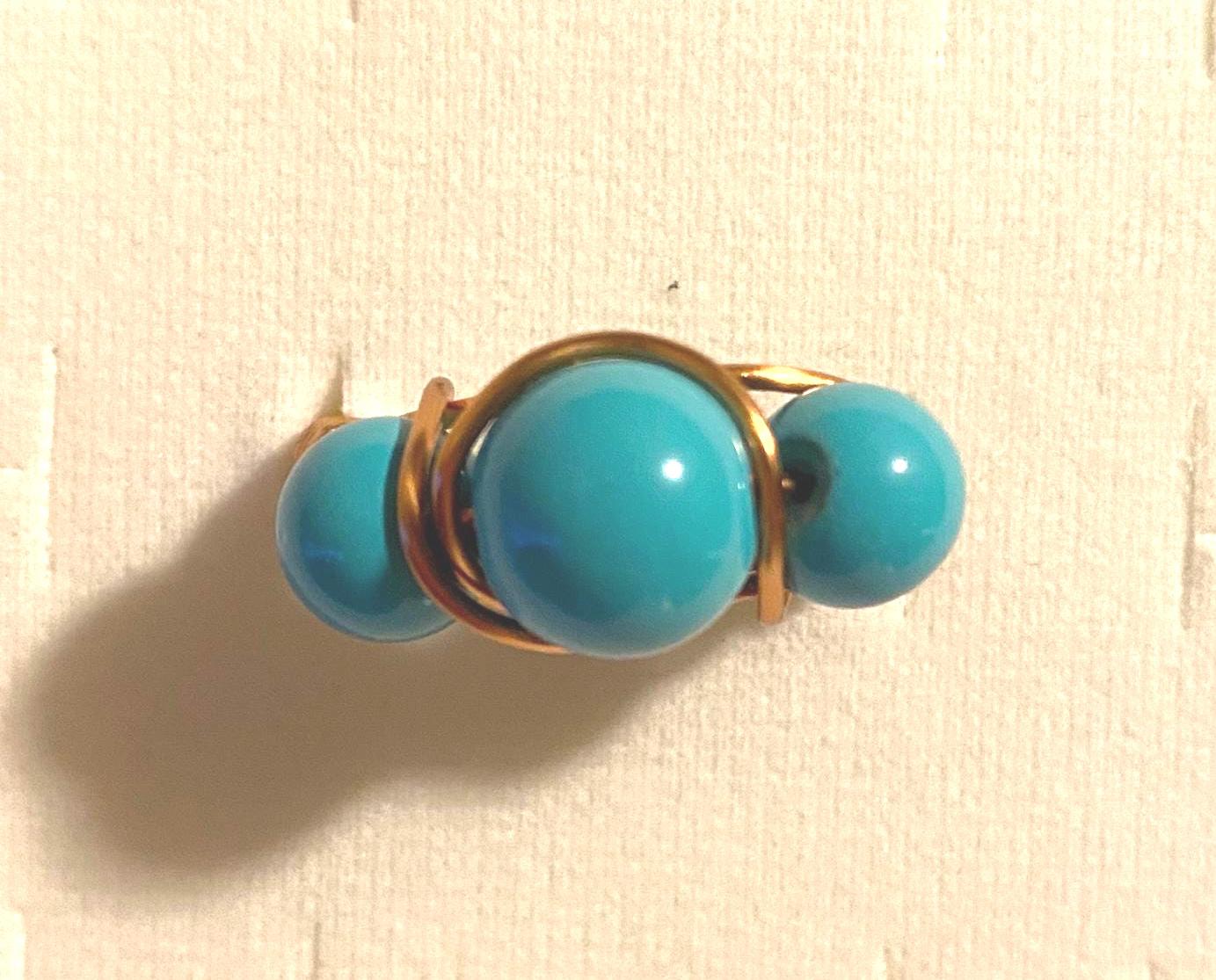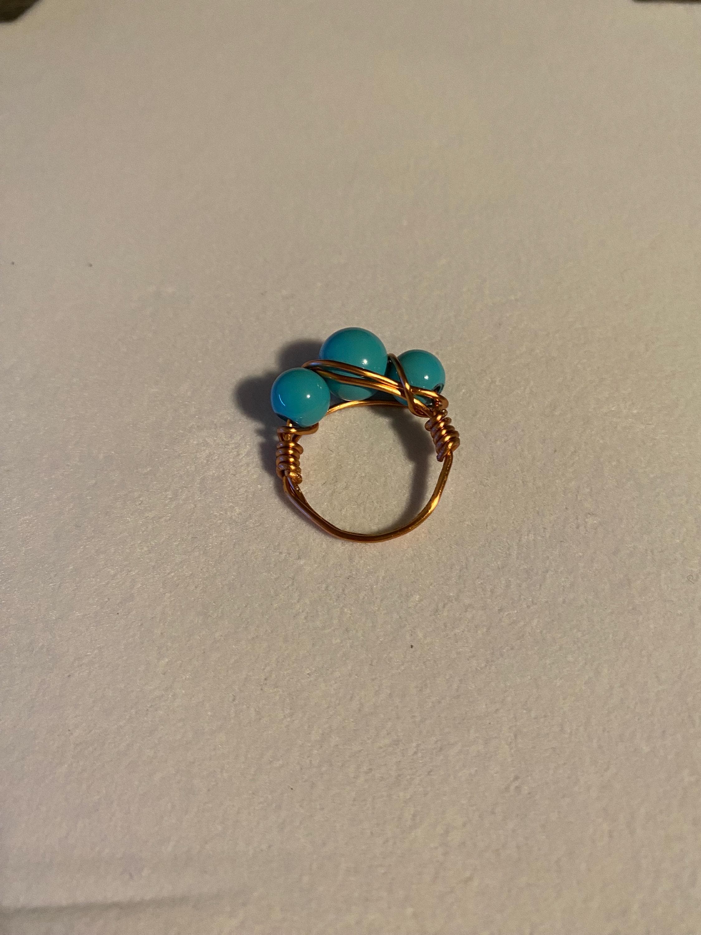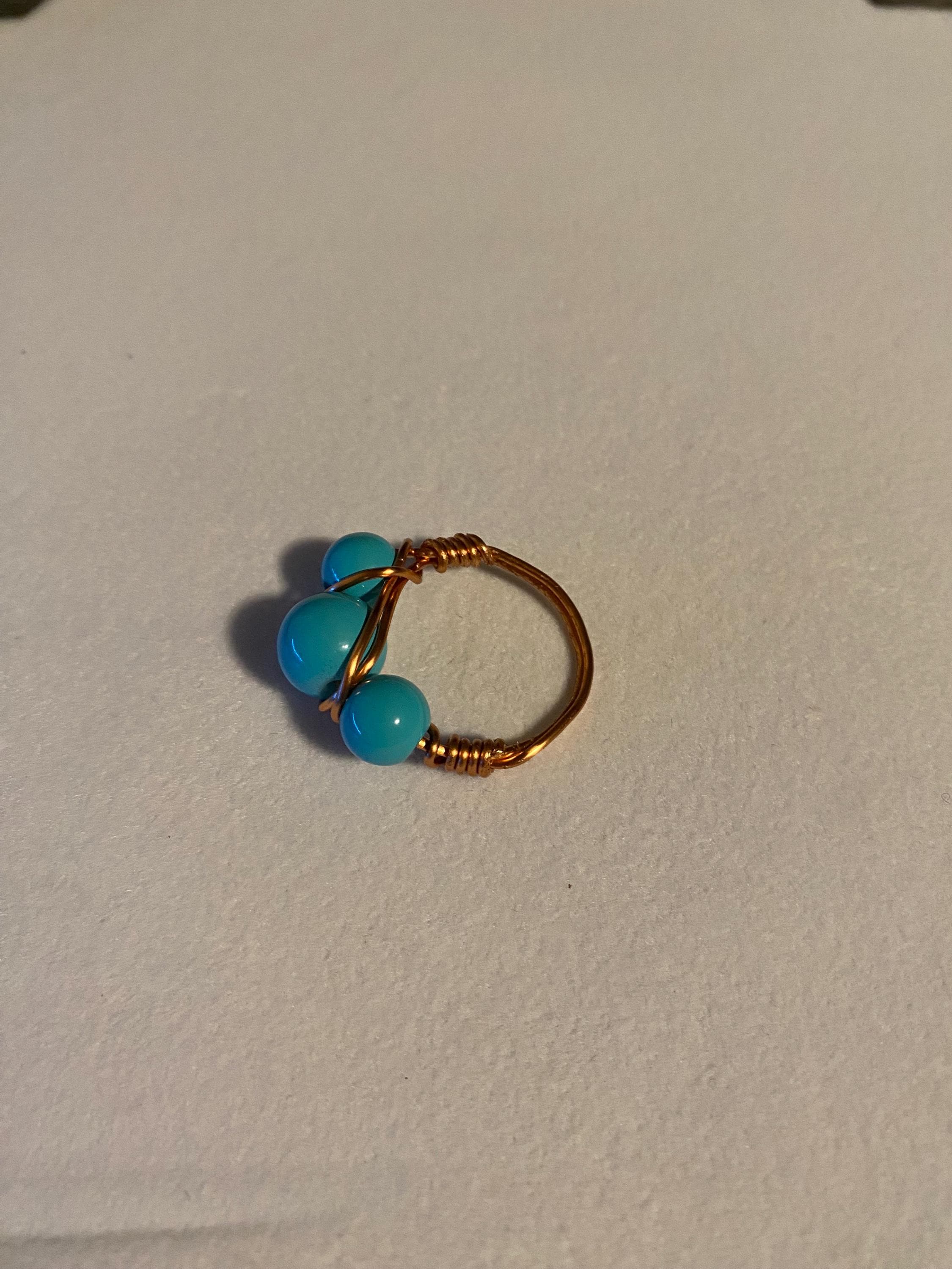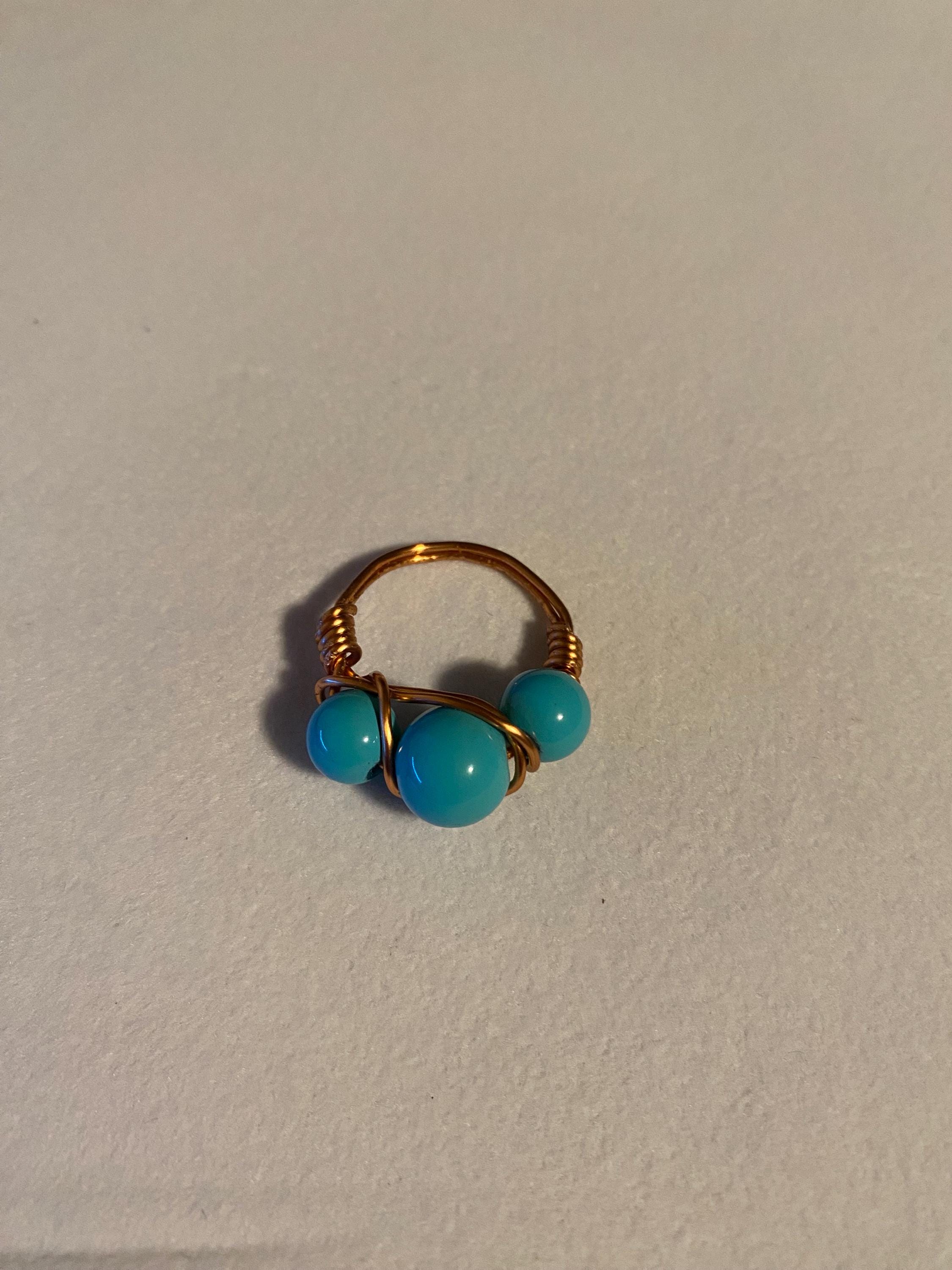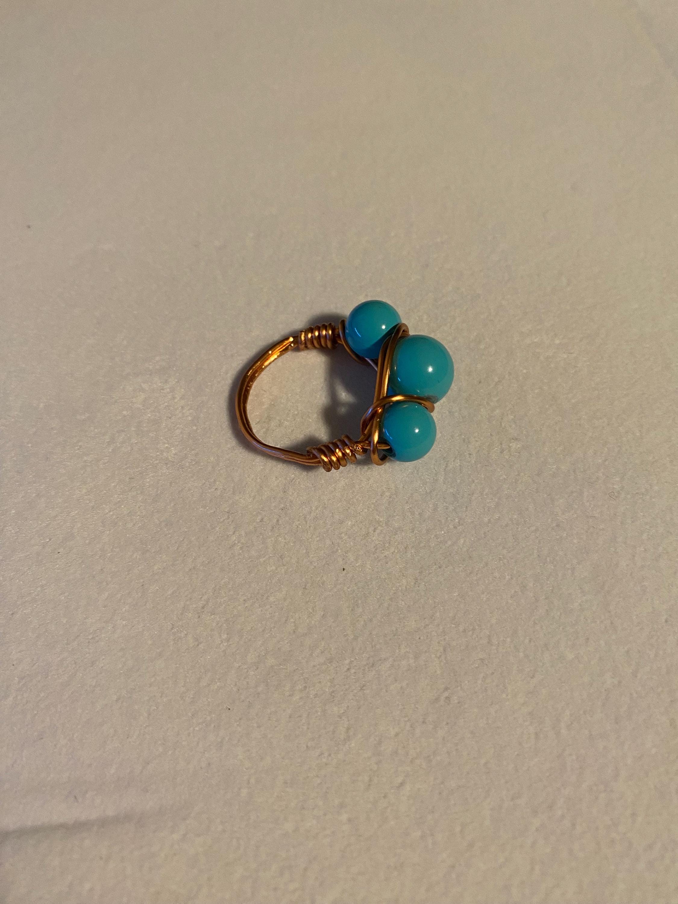 Handmade wire Ring with 3 acrylic beads. Size 9.