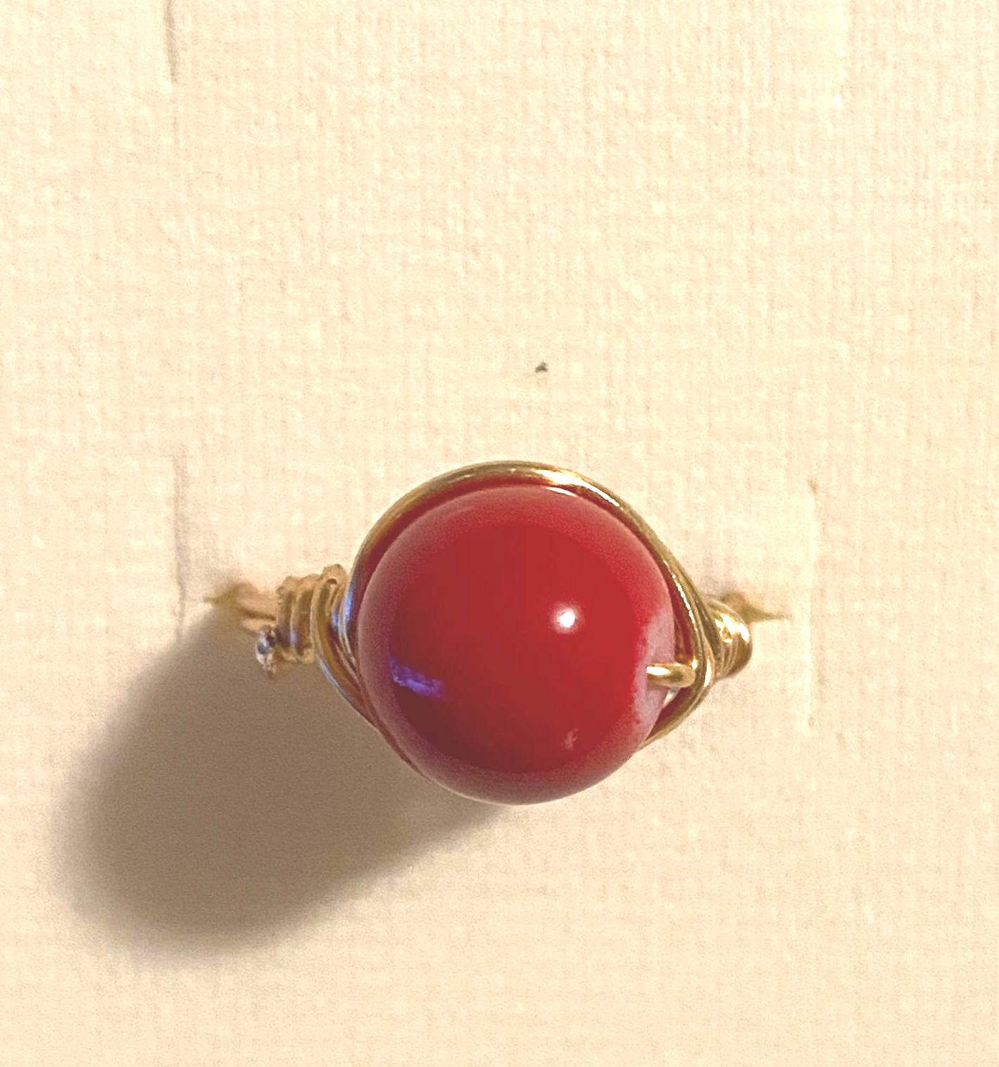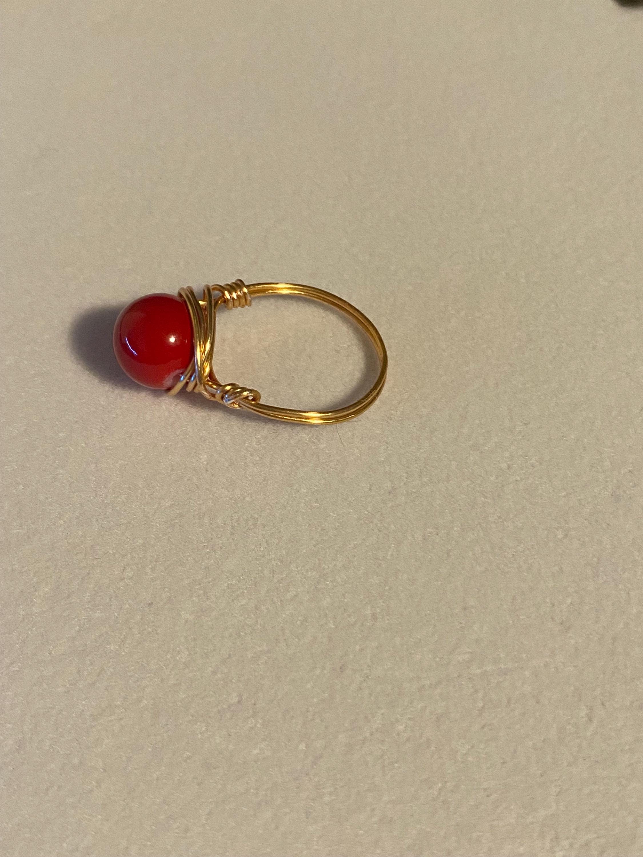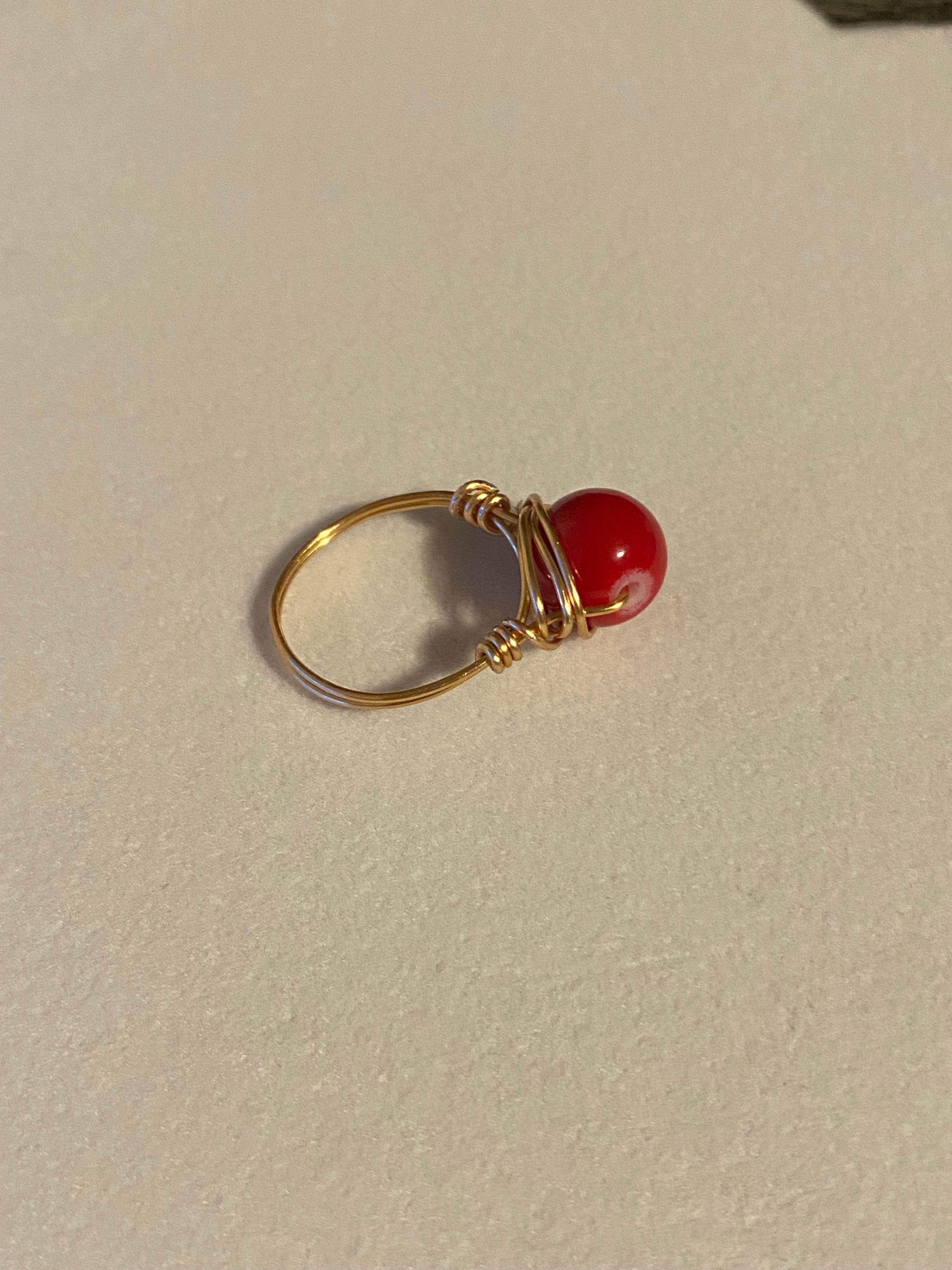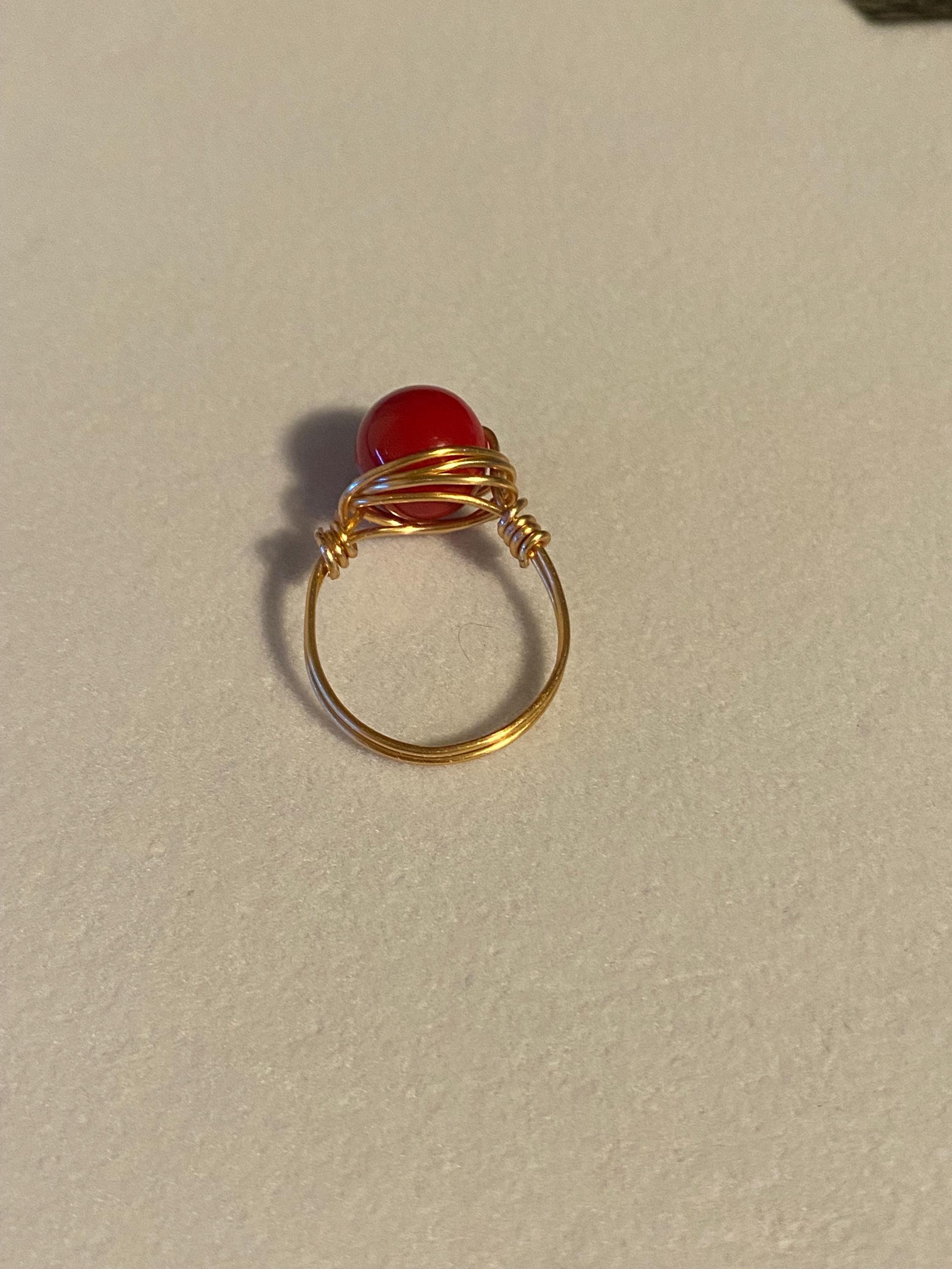 Handmade wire ring with an acrylic bead. Size 7.