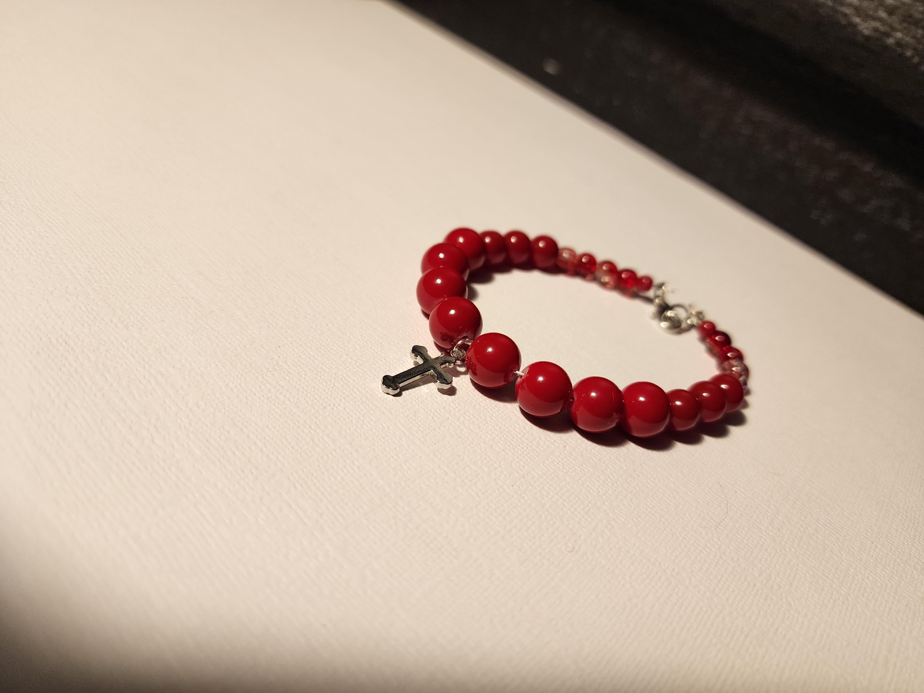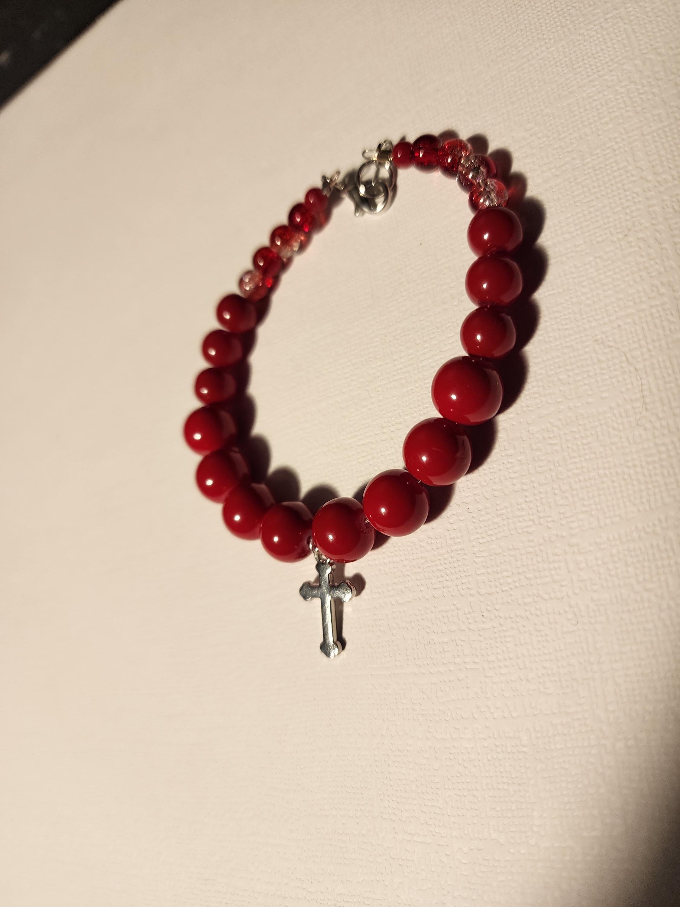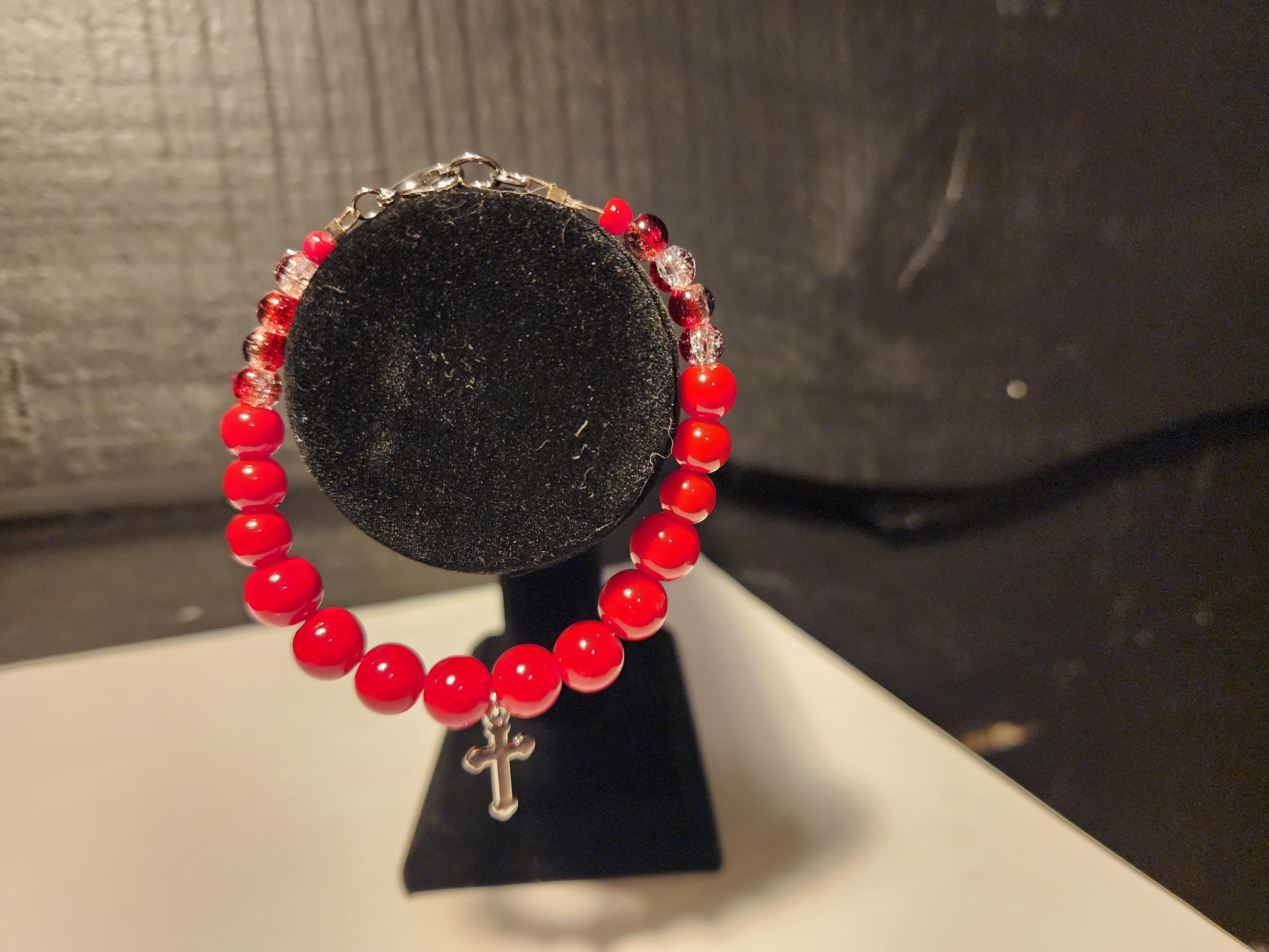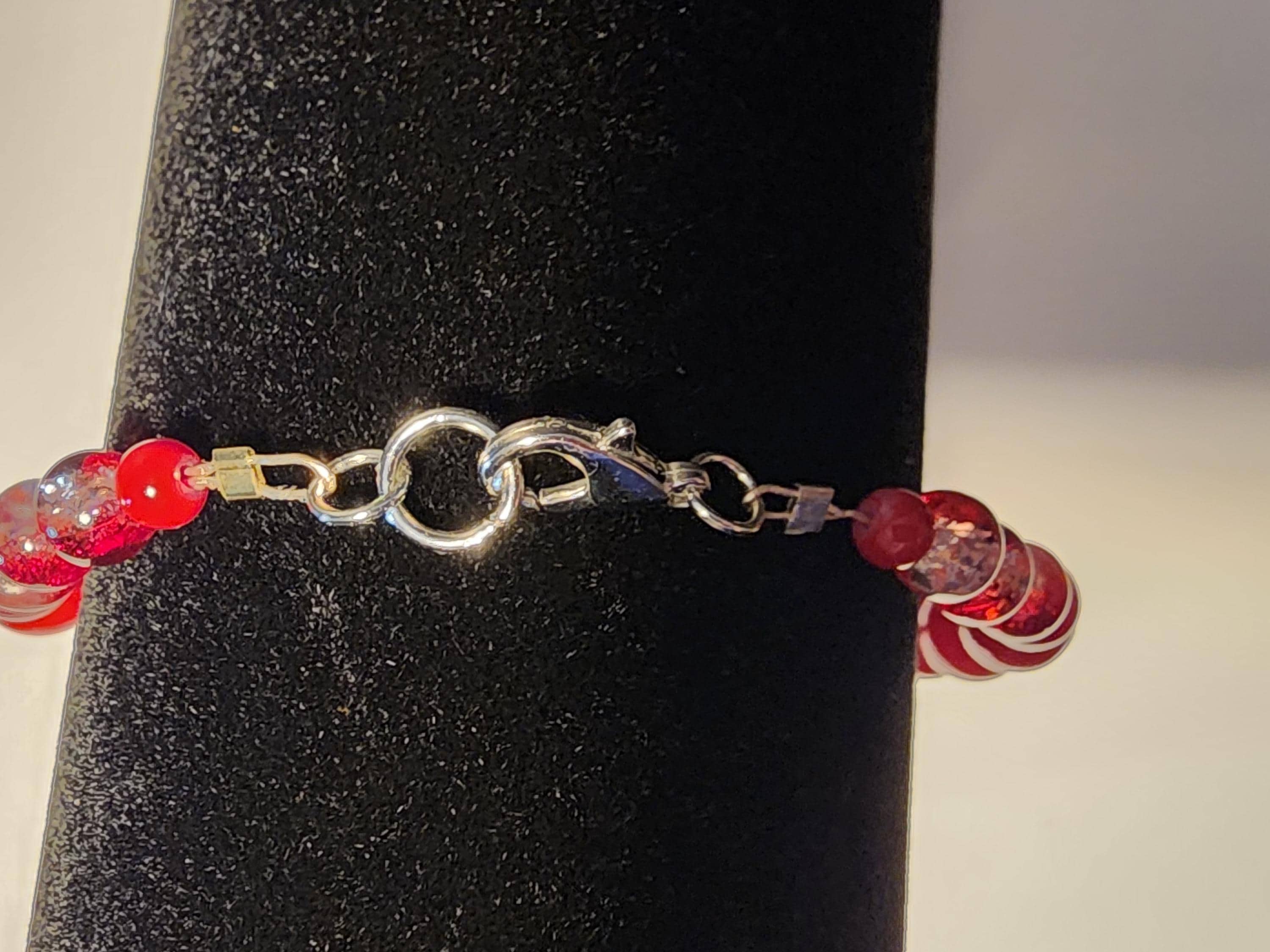 8 1/2-Inch-Long Red Glass Beaded Bracelet has Lobster claw clasp.
